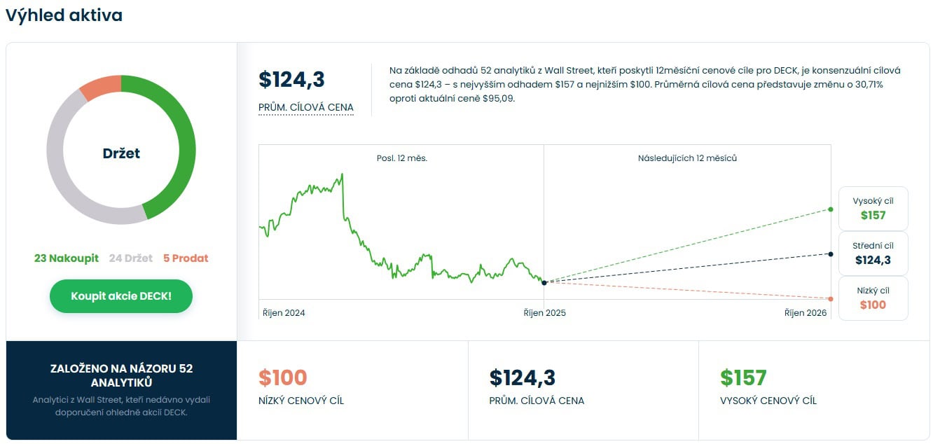 Cenová predikce pro akcie Deckers Outdoor od analytiků z Wall Street
