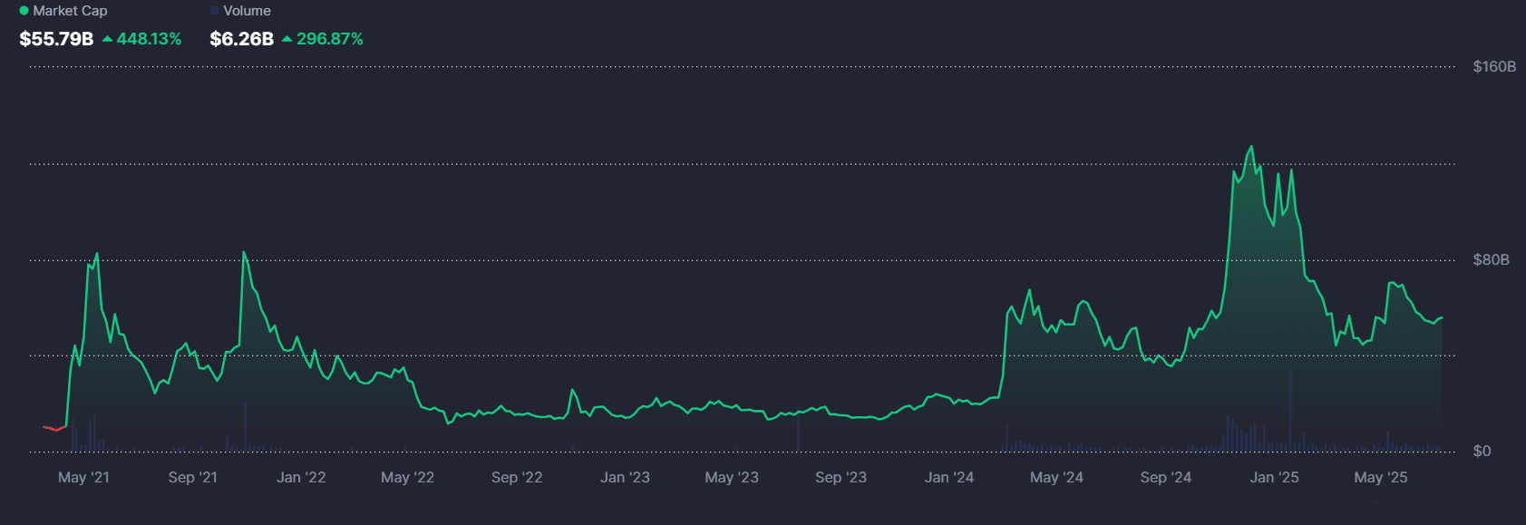 Navzdory tomuto vývoji celková tržní kapitalizace meme coinů nadále klesá. Data agregátoru CoinMarketCap uvádí, že se tržní kapitalizace meme coinů pohybuje kolem 54 miliard dolarů.
