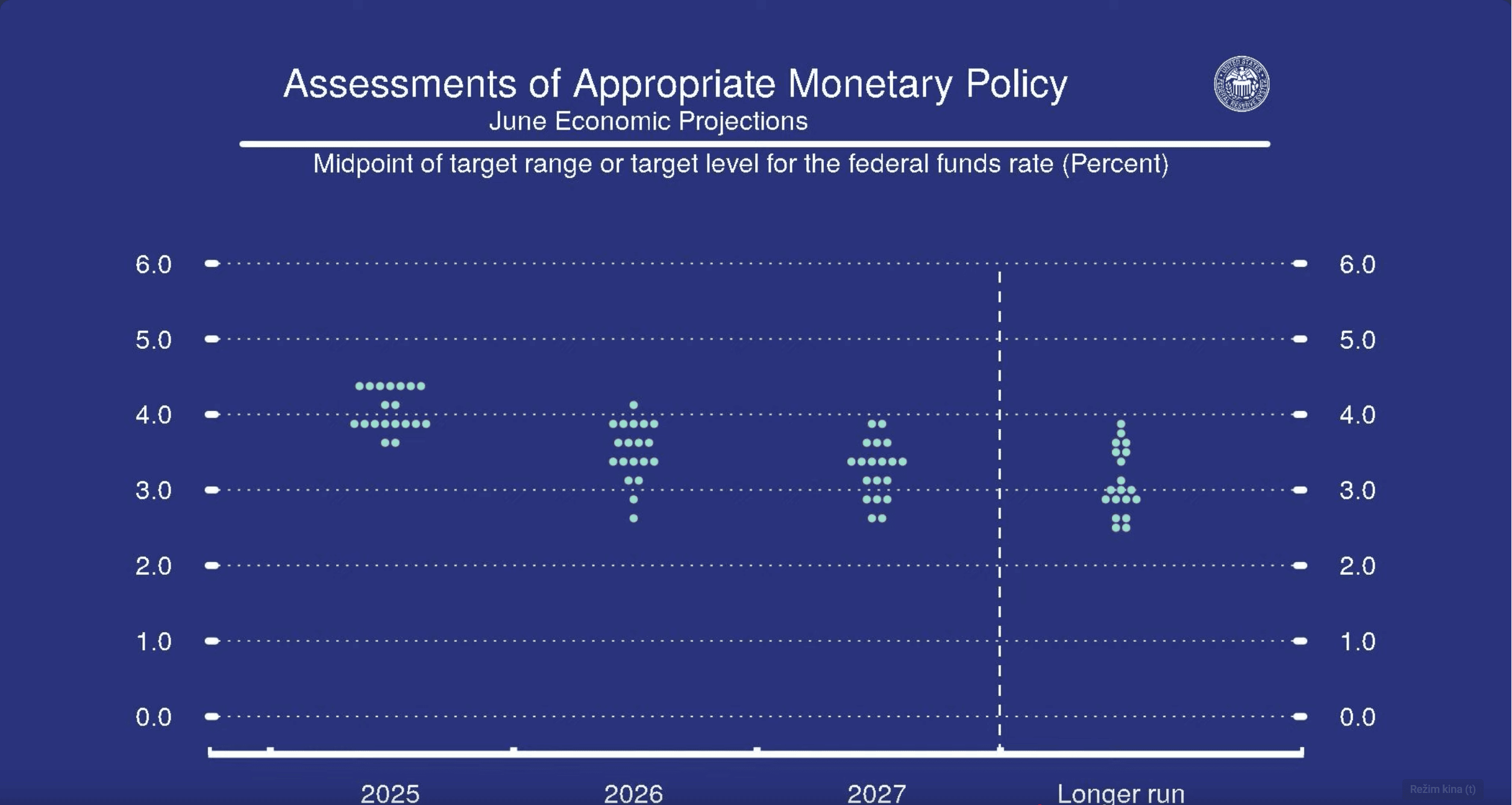 Dot plot diagram reprezentující projevený názor jednotlivých členů FOMC