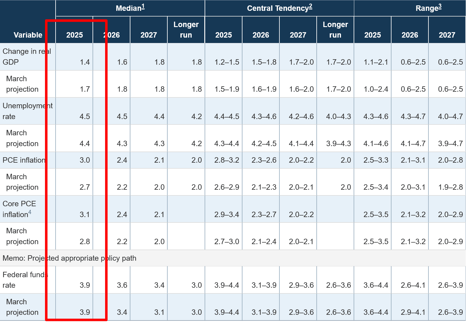 Mimo jiné došlo ke zhoršení ekonomické prognózy. Výhled pro růst HDP byl snížen a odhad pro inflaci měřenou ukazatelem PCE naopak zvýšen, a to hlavně pro rok 2025.