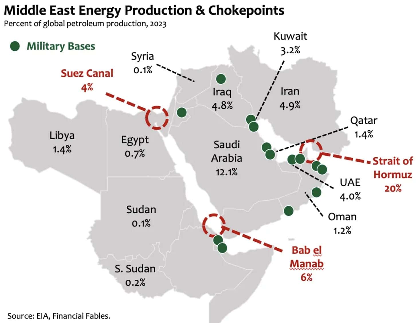 Další závažným tématem je eskalace konfliktu na Středním východě. Vzhledem k tomu, že se z oblasti konfliktu přepravuje až 20 % globální produkce ropy, případný výpadek by jednoznačně způsobil vážný nabídkový šok.