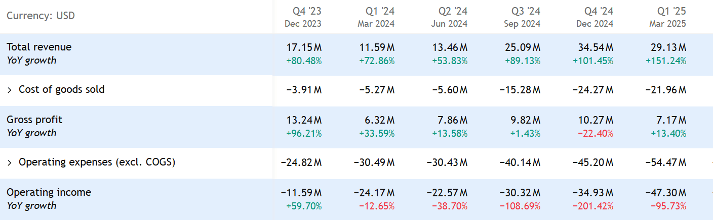 Společnost dosáhla poprvé čistého zisku, který v 1Q 2025 činil 129 milionů USD.