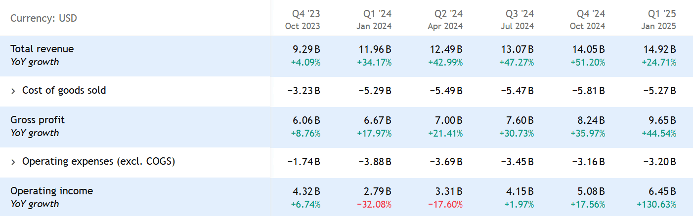 Celkové tržby rostly o 24,7 % a dosáhly 14,9 miliardy USD.
