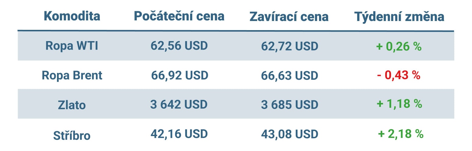 Vývoj ceny nejvýznamnějších komodit v tomto týdnu