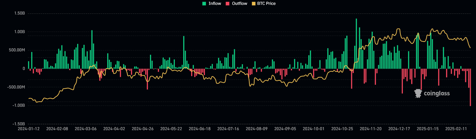 Podle dat společnosti CoinGlass investoři vybrali ze všech amerických ETF během úterý 1,01 miliardy dolarů. To představuje již šestý den odlivu peněz v řadě z těchto fondů.