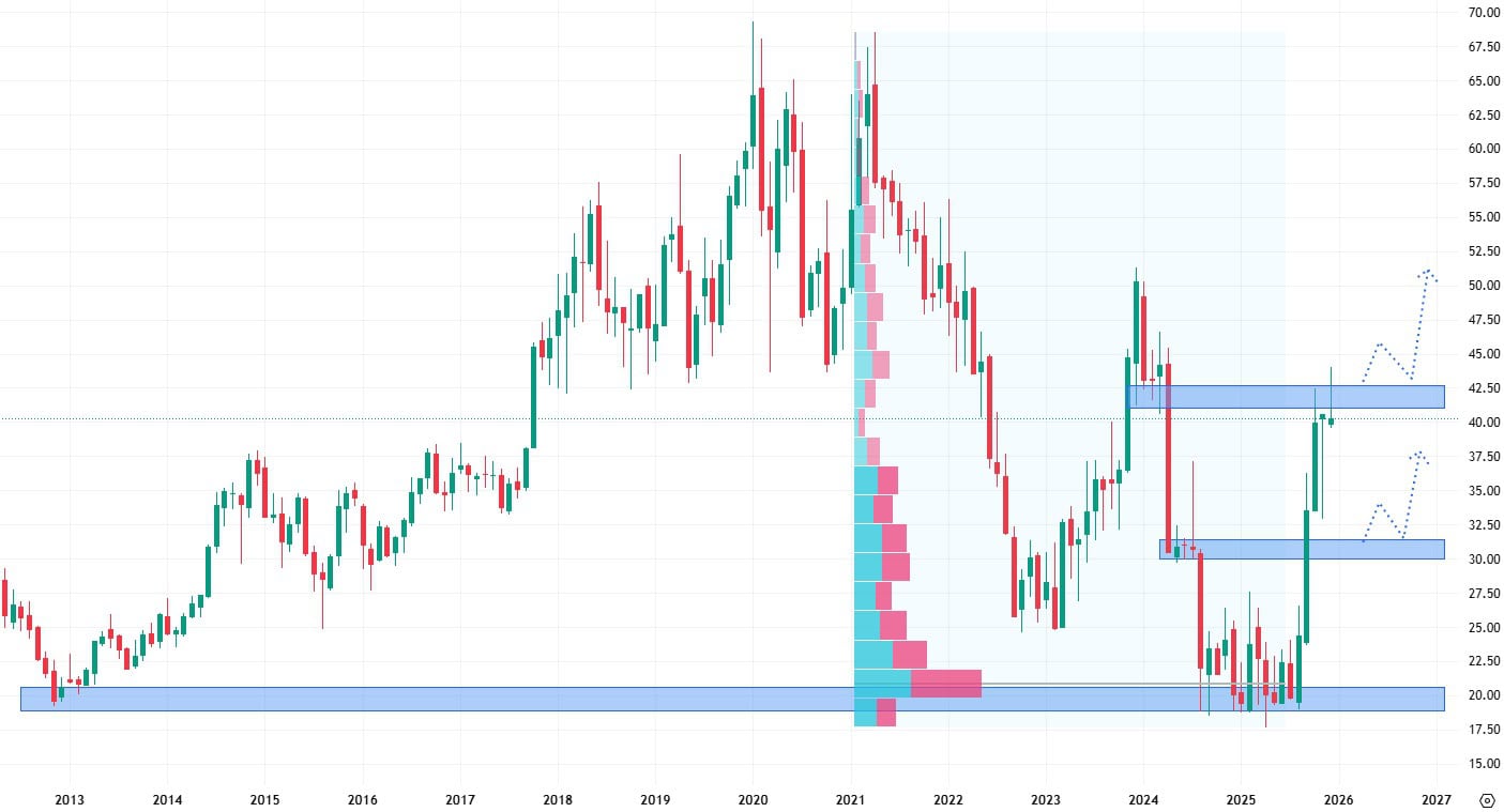 Akcie SharkNinja se dlouhodobě obchodují v rostoucím trendu, ale jsou mladé, takže by investoři měli počítat se zvýšenou volatilitou. Nejbližší suport se nachází na úrovni cenových minim a to na 85 USD.
