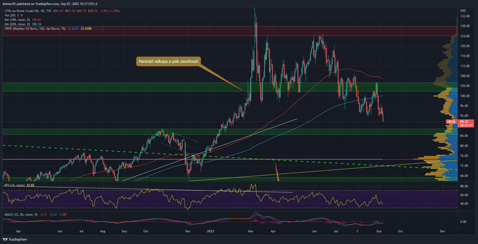 A co na to trh s ropou? Úvodní reakce byla růstová, protože se na tom chtěla určitá část trhu hned svést. To ale trvalo jenom pár hodin. Pak kurz opětovně pokračoval v kurzovém poklesu. Dokonce jsme se dostali pod 90 USD za barel a směřujeme k důležitému S/R pásmu 85 USD.