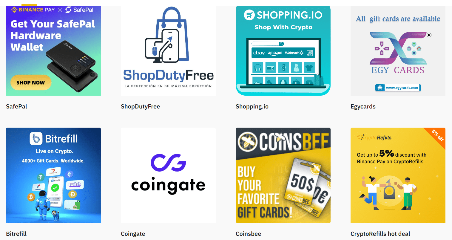 Poznámka: Celou paletu partnerů si můžete prohlédnout na oficiálních stránkách Binance Pay.
