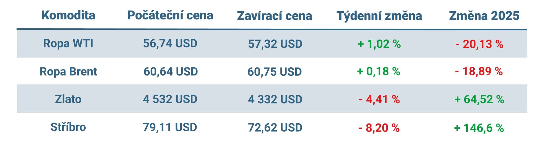Vývoj ceny nejvýznamnějších komodit v tomto týdnu a v roce 2025