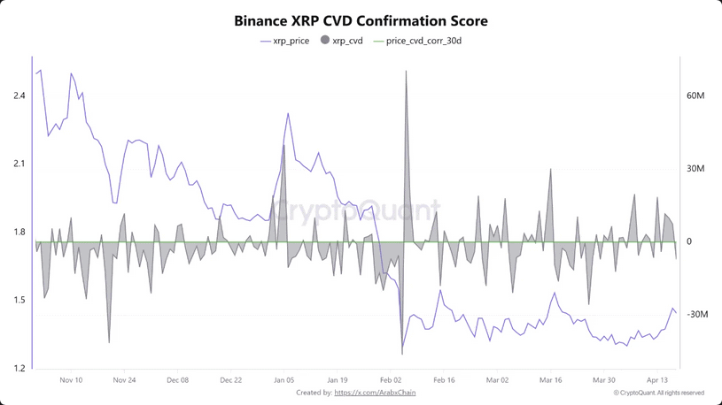 Kumulativní delta objemů (CVD) je nyní záporná (na Binance), což značí, že je otevřeno více prodejních než nákupních příkazů.
