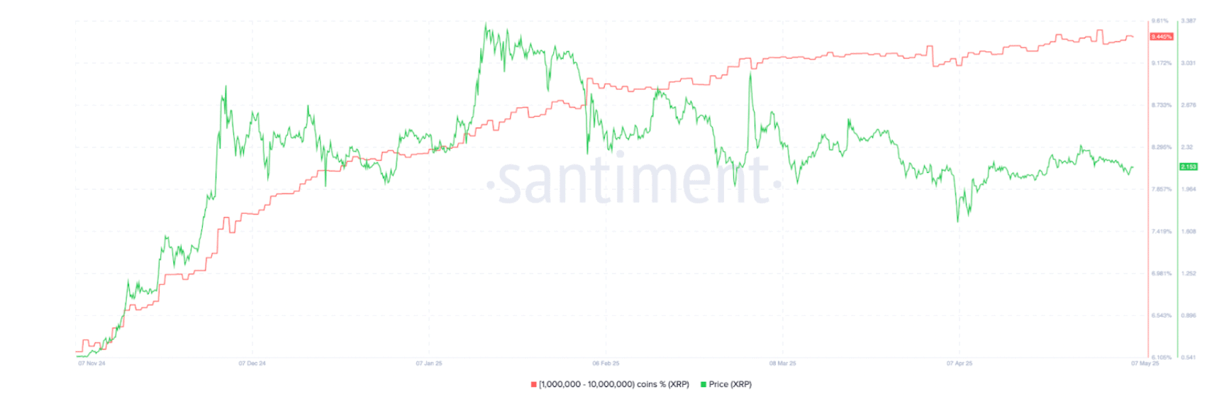 Tito investoři nyní drží 9,44 % všech tokenů XRP v oběhu, což je od začátku roku nárůst o 1,2 %.