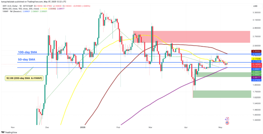 Podle analytika vystupujícího pod přezdívkou Dom si XRP 50denní jednoduchý klouzavý průměr musí udržet, aby se nepropadlo na 1,9 dolaru. Analytik Egrag Crypto dodal, že by XRP nemělo a nemůže uzavřít pod 1,83 dolaru.