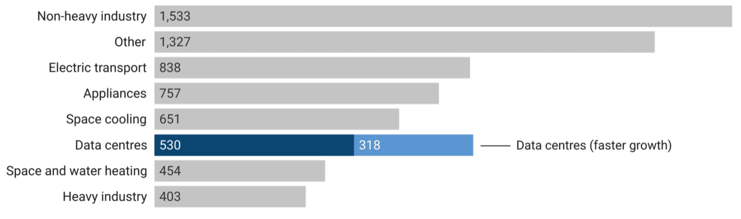 Desetina růstu poptávky po elektřině by měla v letech 2024 až 2030 pocházet právě z datových center