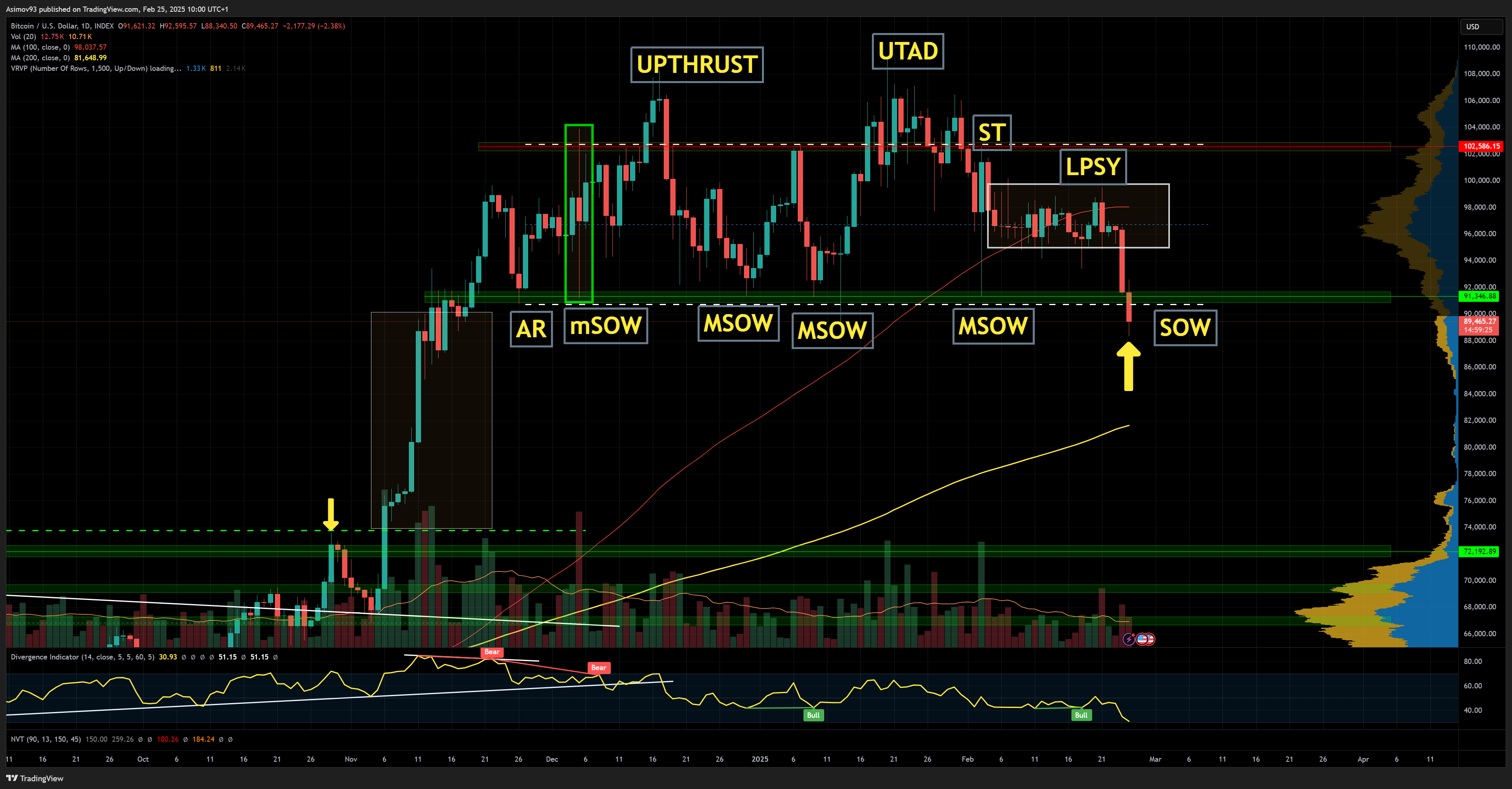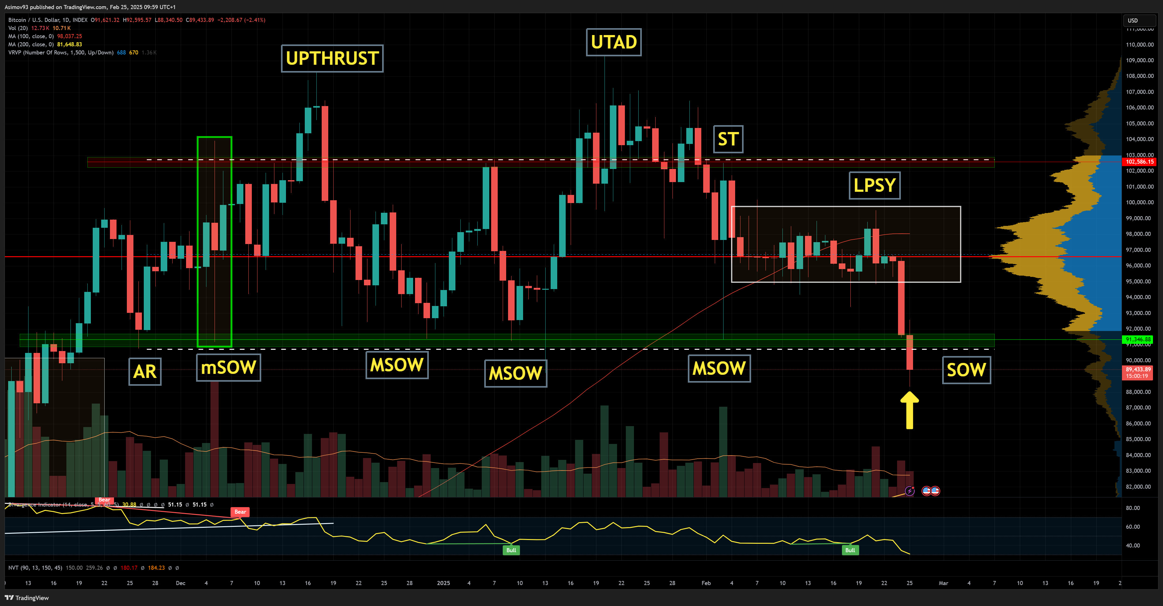 Bitcoin vykazoval známky distribuce dle Wyckoff analýzy