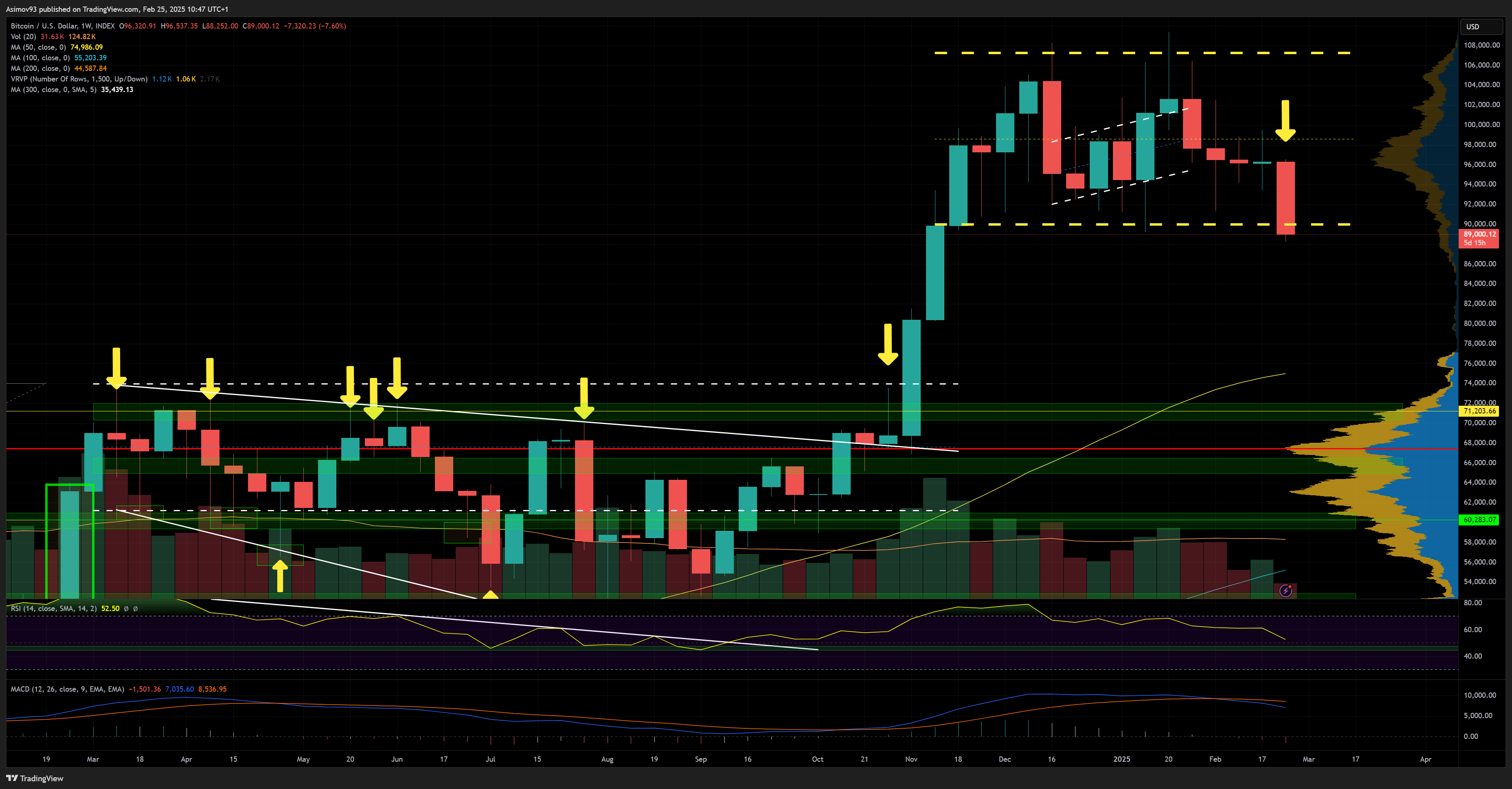 Bitcoin na týdenním grafu
