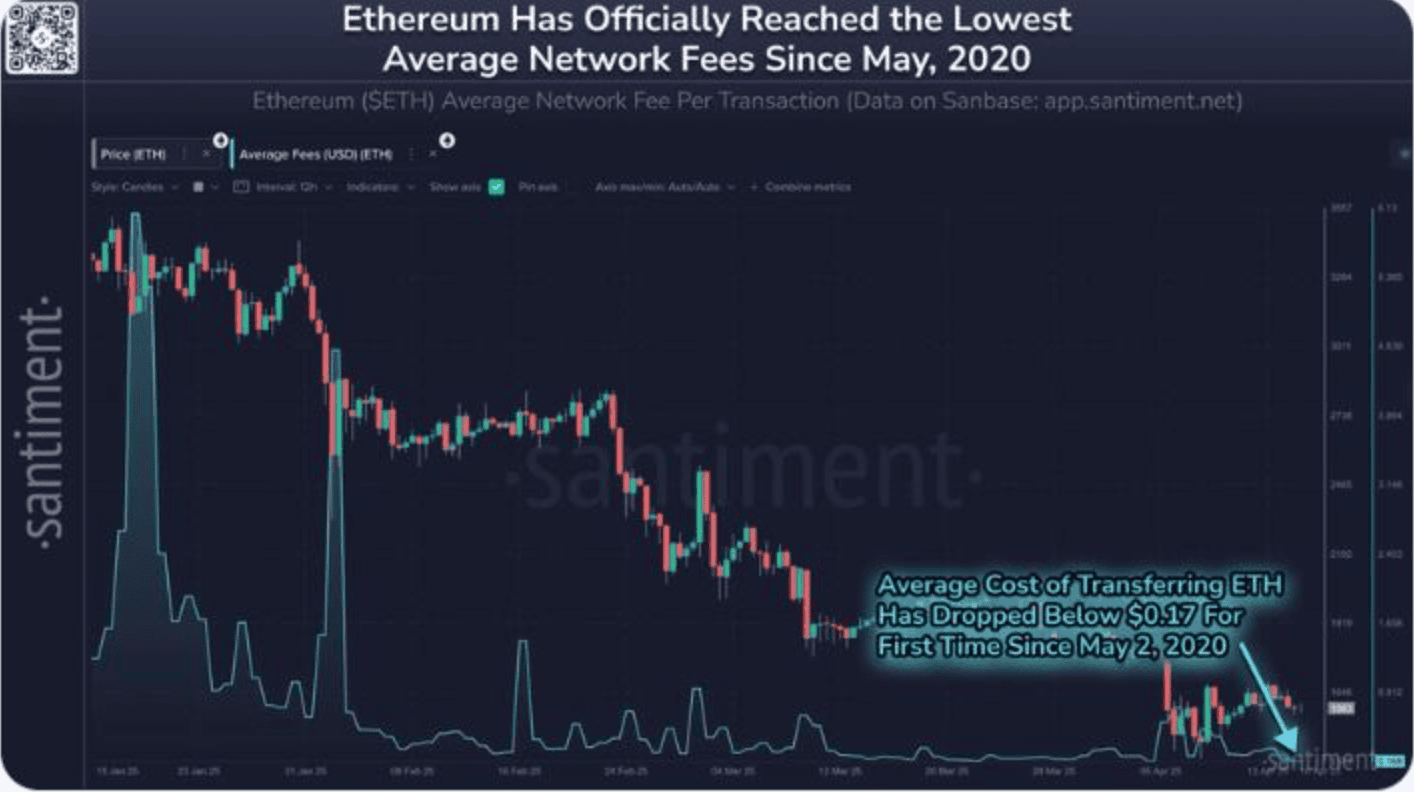 Podle onchain analytické platformy Santiment klesly transakční poplatky na Etheru díky malé aktivitě na blockchainu.