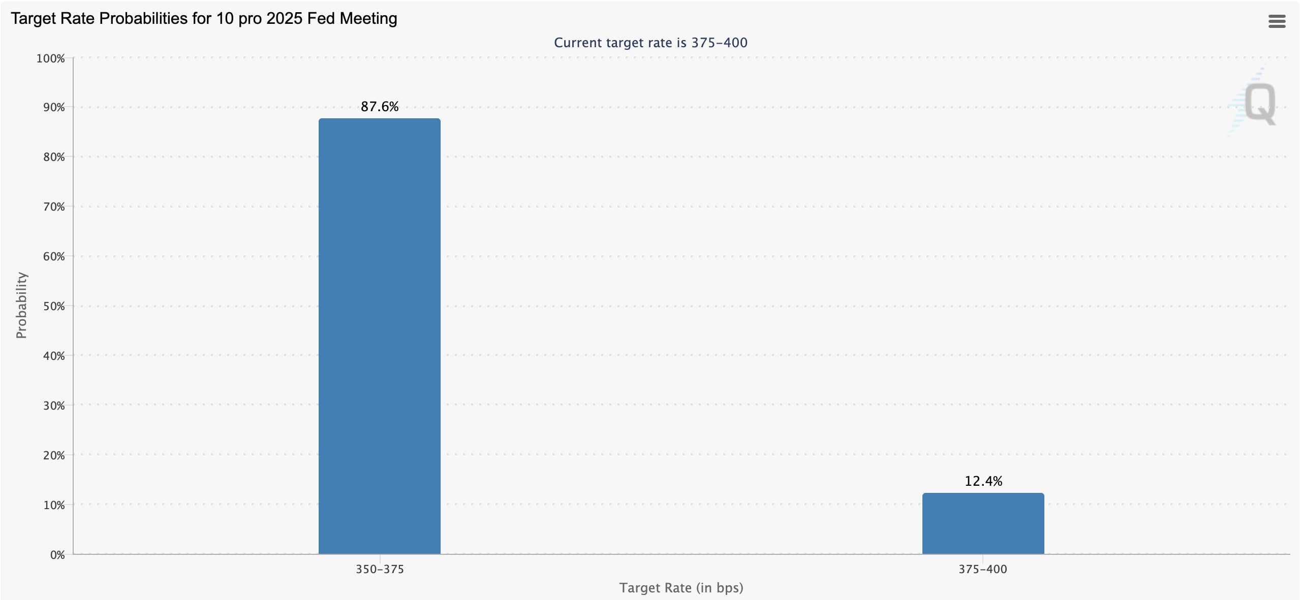 Federální rezervní systém má na dnešním zasedání snížit základní úrokovou sazbu o 25 bazických bodů. Trh tento krok již očekává. Uvolněnější podmínky a odolná americká ekonomika by mohly zvýšit chuť investorů k riziku.