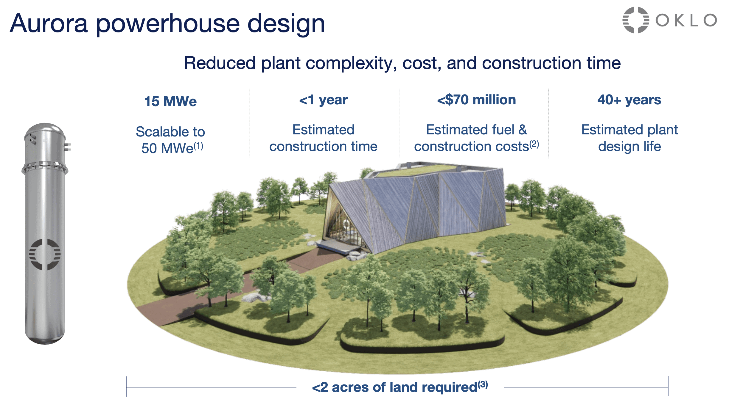 Mikroreaktor Aurora od Okla má za cíl tyto překážky eliminovat. V základu je navržen k produkci 1,5 megawattu energie, ale při zapojení více jednotek dokáže dosáhnout výkonu až 75 megawattů.