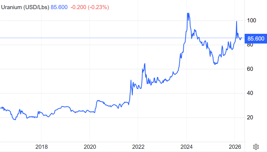 Analytici ze Citi navíc letos vidí prostor k růstu ceny až ke 100–125 USD za libru, z čehož by Cameco masivně těžilo. Kanadský producent zároveň posiluje svou přítomnost napříč celým ekosystémem jaderné energetiky.