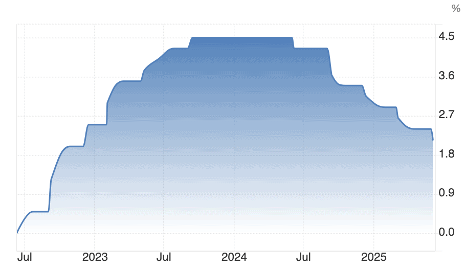 Vývoj základní úrokové sazby ECB za poslední 3 roky