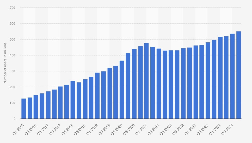 Jak již bylo zmíněno, platforma má přes 550 milionů aktivních měsíčních uživatelů. Tržby rostou více než 10 % za rok a hlavně zisk by měl postupně růst ještě rychleji díky lepší monetizaci.