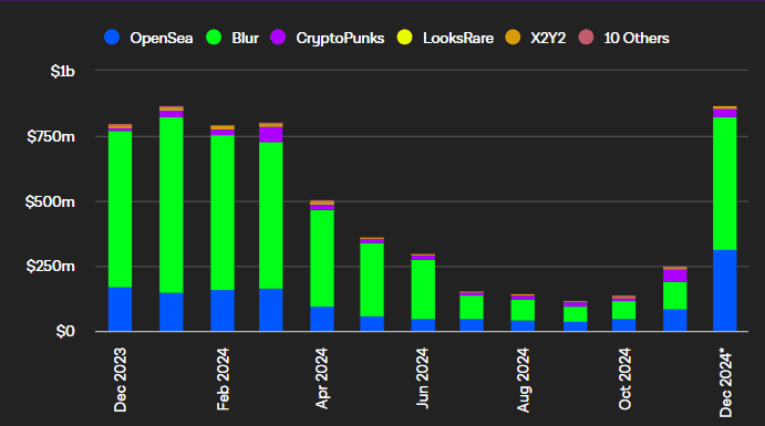Konkurenční prostředí mezi NFT tržišti výrazně ovlivnilo samotný trh, neboť platformy jako Magic Eden, Blur a OpenSea si tvrdě konkurovaly a každá z nich představovala nové funkce.