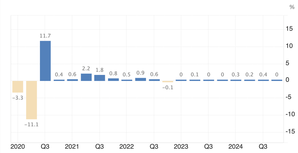 Analytici předpokládali, že se hrubý domácí produkt (HDP) sníží o 0,1 %, ale prosincový růst o 0,4 % toto čtvrtletí zvedl.
