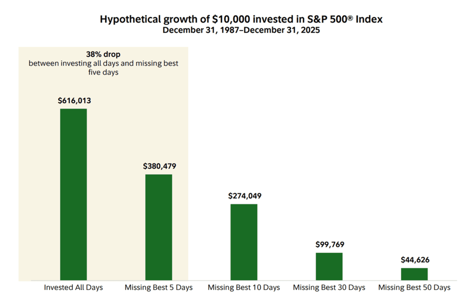 Analýza od Fidelity navíc uvádí, že pokud by investor od roku 1988 promeškal pouhých pět nejlepších obchodních dnů, jeho celkový výnos by byl o plných 38 % nižší.