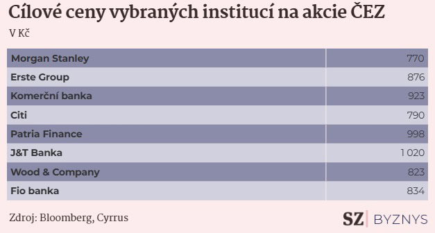 Nejvíce akciím ČEZ věří J&T Banka, která očekává cenu akcií ČEZ na konci roku na ceně 1 020 CZK. Nejnižší očekávání mají zahraniční bankovní domy. Americká banka Citigroup disponuje nejnižším očekáváním a odhaduje cenu akcií ČEZ na 790 CZK.