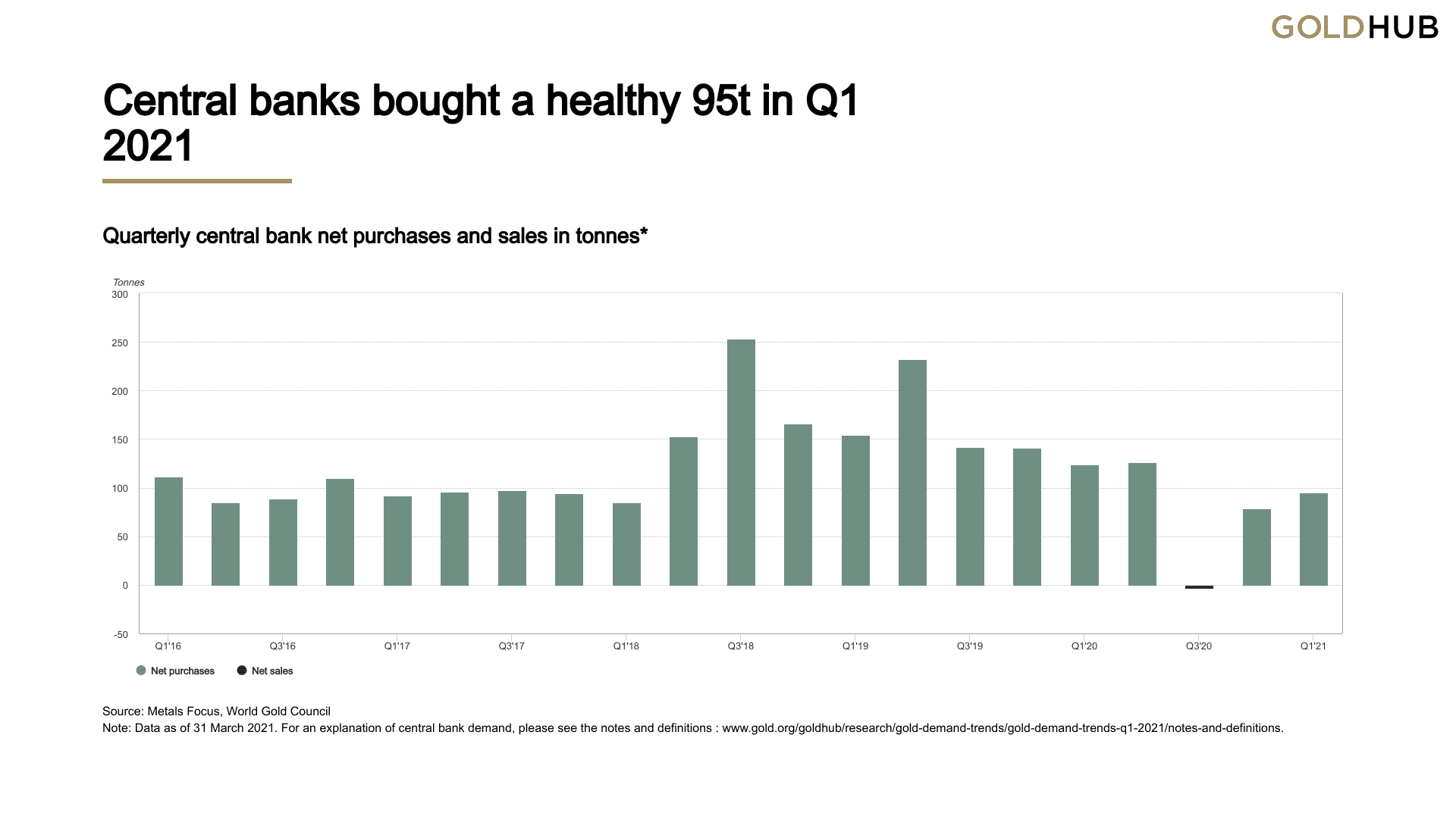 Druhý graf nám vizualizuje poptávku centrálních bank po zlatě. Data nám říkají, že obecně mají centrální banky tendenci zlato akumulovat. Pouze ve třetím čtvrtletí 2020 více prodaly než nakoupily. Centrální banky tuto komoditu fakticky nakupovat nemusí, protože nic jako zlatý standard už hodně dlouho neexistuje. Proč to tedy dělají?