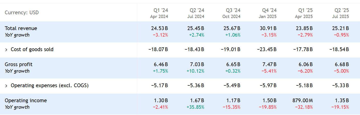 Vysoké ceny a stále vyšší úrokové sazby však omezily výdaje spotřebitelů, což ovlivnilo tržby. Ve druhém fiskálním čtvrtletí poklesly tržby ve stejných prodejnách o 1,9 %, což bylo ovlivněno sníženou návštěvností a výdaji.