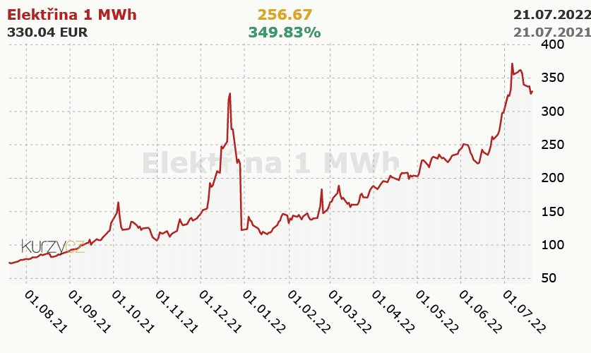 Současná tržní cena činí 330 EUR, takže během jednoho roku kurzy vzrostly o 350 %. Takový růst cen elektřiny je samozřejmě obrovská zátěž pro domácnosti a firmy. Rostou jim náklady, které je nutné kompenzovat. Zatímco domácnosti se snaží vzestup nákladů kompenzovat poptávkou po větší mzdě, firmy náklady zkrátka přenesou na zákazníka v podobě cen jejich produktů a služeb. A inflační spirála je na světě. Je to vlastně takový nekonečný koloběh, protože inflace krmí další inflaci.