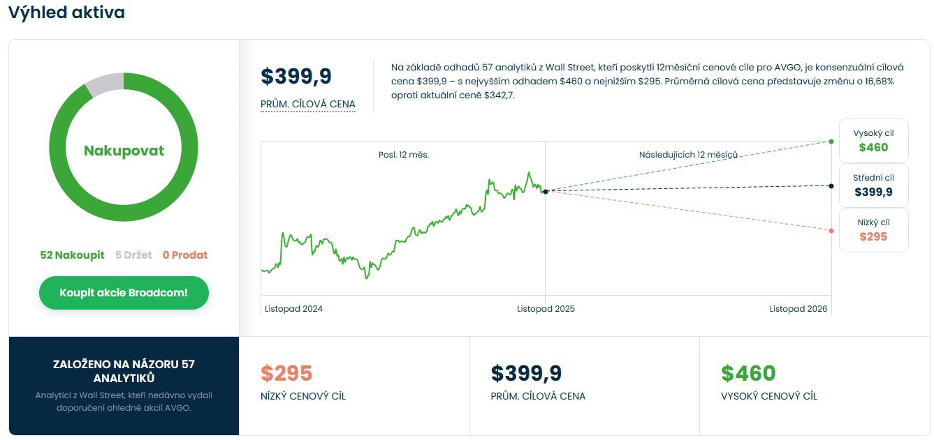 Cenová predikce pro akcie Broadcom od analytiků za Wall Street