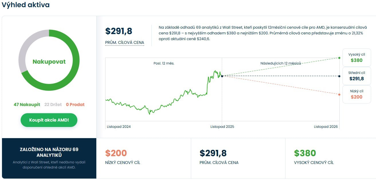 Cenová predikce pro akcie AMD od analytiků z Wall Street