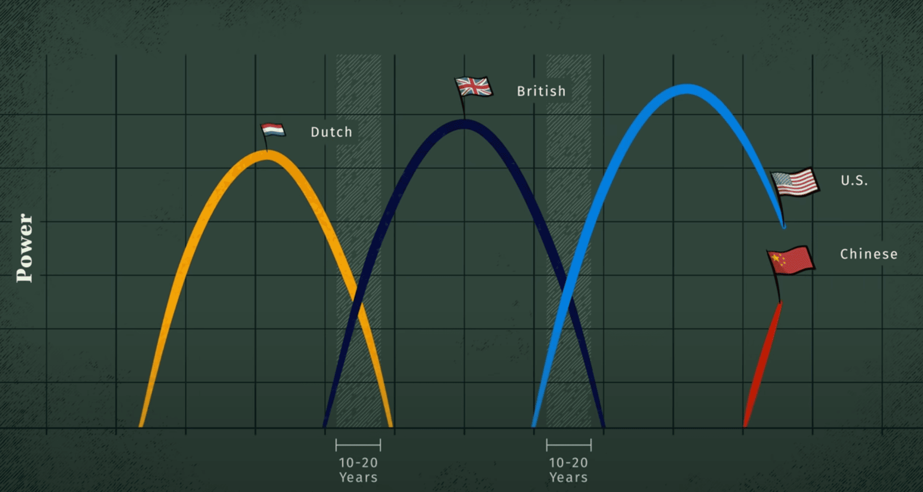 Úpadek vládnoucí mocnosti ve světě trvá deset až dvacet let. Nejedná se tedy o změnu, která přijde ze dne na den, ale naopak taková změna trvá dlouho. Jde o pozvolný úpadek jedné mocnosti a pozvolný nástup mocnosti jiné. Právě proto, že se tento fenomén děje velmi pomalu, máme tendenci ho podceňovat a pak jsme překvapení, že najednou jsou věci jinak, než tomu bylo dosud. A přitom lze velmi dobře poznat, když ekonomická velmoc upadá.