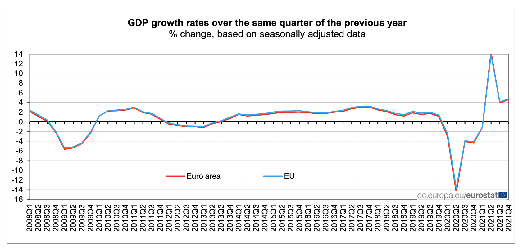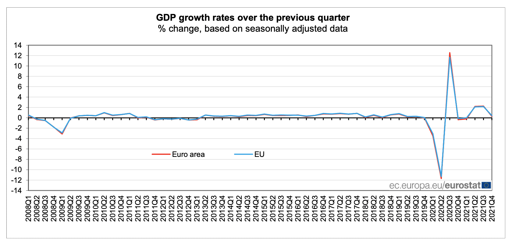 Statistický úřad Eurostat oznámil, že hrubý domácí produkt Evropské unie ve 4. čtvrtletí vzrostl oproti 3. čtvrtletí podle sezóně přepočtených údajů o 0,4 %. Můžeme říci, že se jedná o razantní zpomalení proti 3. kvartálu, kdy byl růst 2,2 %.