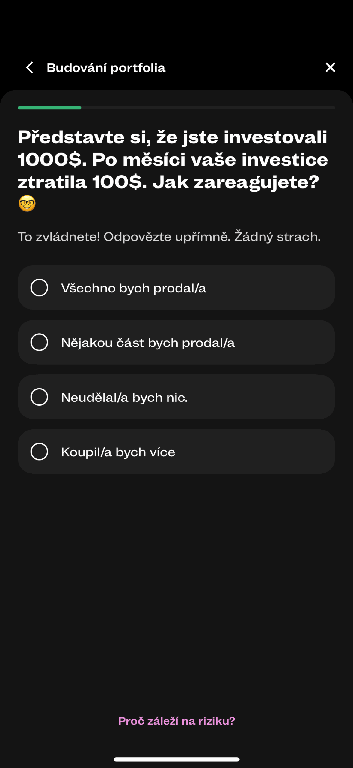 Po dokladu totožnosti si uděláte selfie a pokračujete na investiční dotazník.