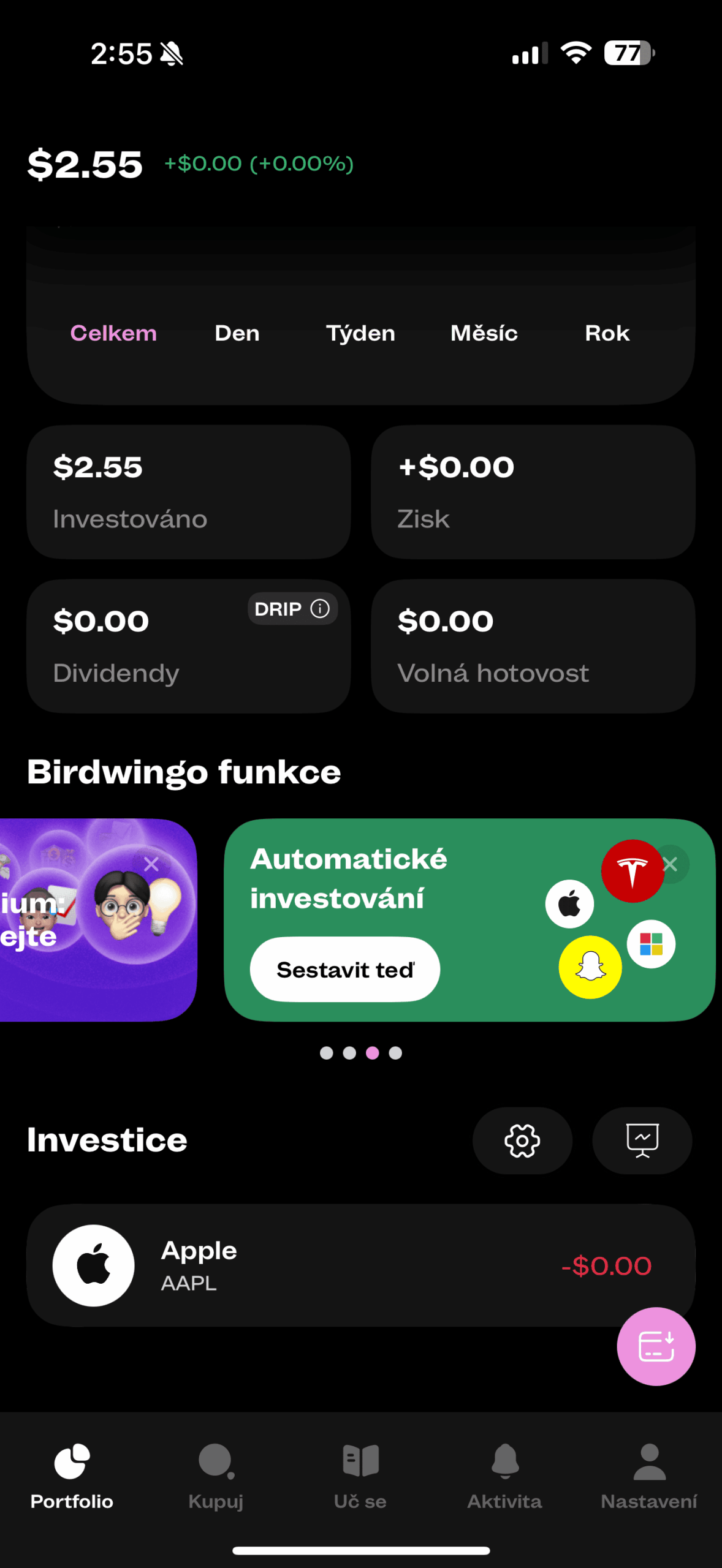 Birdwingo se často označuje jako platforma pro drobné investory. To naznačuje, že sofistikované analýzy nebo vyhledávání investičních příležitostí zde nenajdete – aplikace klade důraz na jednoduchost a intuitivní ovládání.