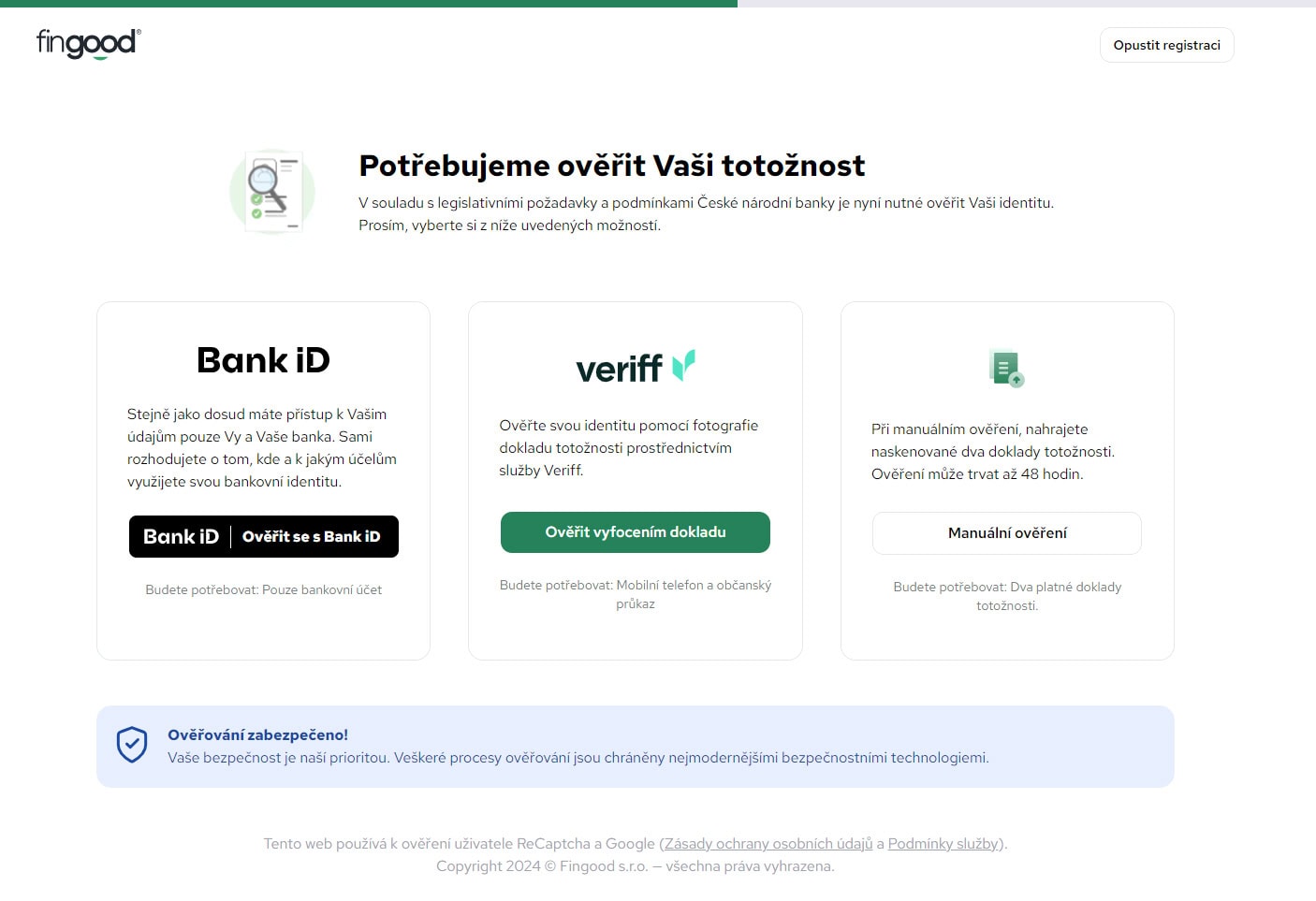 Pokud Bank ID nemáte, nebo jej prostě nechcete použít, lze registraci dokončit i pomocí veriff, případně klasickým nahráním scanu vašich dokladů. Dokončení registrace je tak skutečně snadné.
