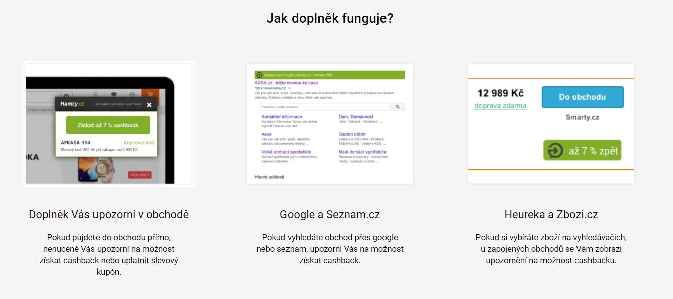 Nejčastější chybou uživatelů cashback portálů je chvíle, kdy zapomenou na přesměrování pomocí odkazu na e-shop, ve kterém chtějí nakupovat. Tohoto problému si je vědomé i Hamty, a proto přišlo s rozšířením do prohlížeče.
