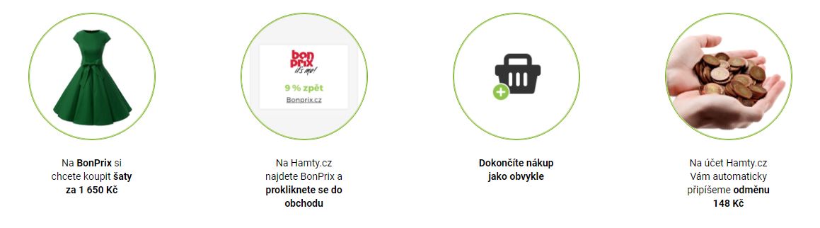 Samotný e-shop, ve kterém jste nakoupili, pak Hamty informuje o tom, že jste se k nim z cashbacku proklikli, a kolik peněz jste utratili. Hamty dostane odměnu za zprostředkování zákazníka, která se poté automaticky připíše na váš účet. Výše odměny se nejčastěji udává v procentech a uvidíte ji předtím, než se do e-shopu prokliknete.
