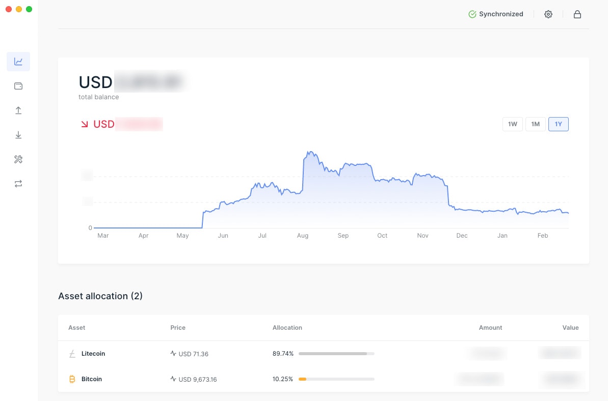 Pokud tuto aplikaci vidíte poprvé, bude vhodné vysvětlit, jak se v ní orientovat. Pokud máte zařízení Ledger připojeno k počítači a v aplikaci jste se přihlásili, uvidíte něco podobného, jako na obrázku níže.