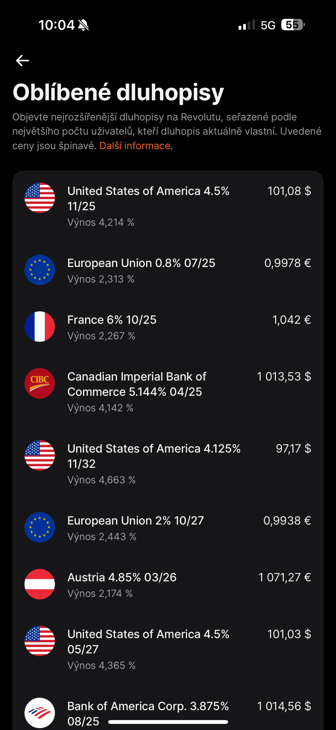 Abych ovšem Revolut Invest pouze nehanil, celkově to je velmi podařená aplikace s ještě lepším ceníkem. Přístup k státním dluhopisům a obecně velký výběr aktiv a snadné ovládání v mobilní aplikaci je jednoznačným benefitem Revolutu.