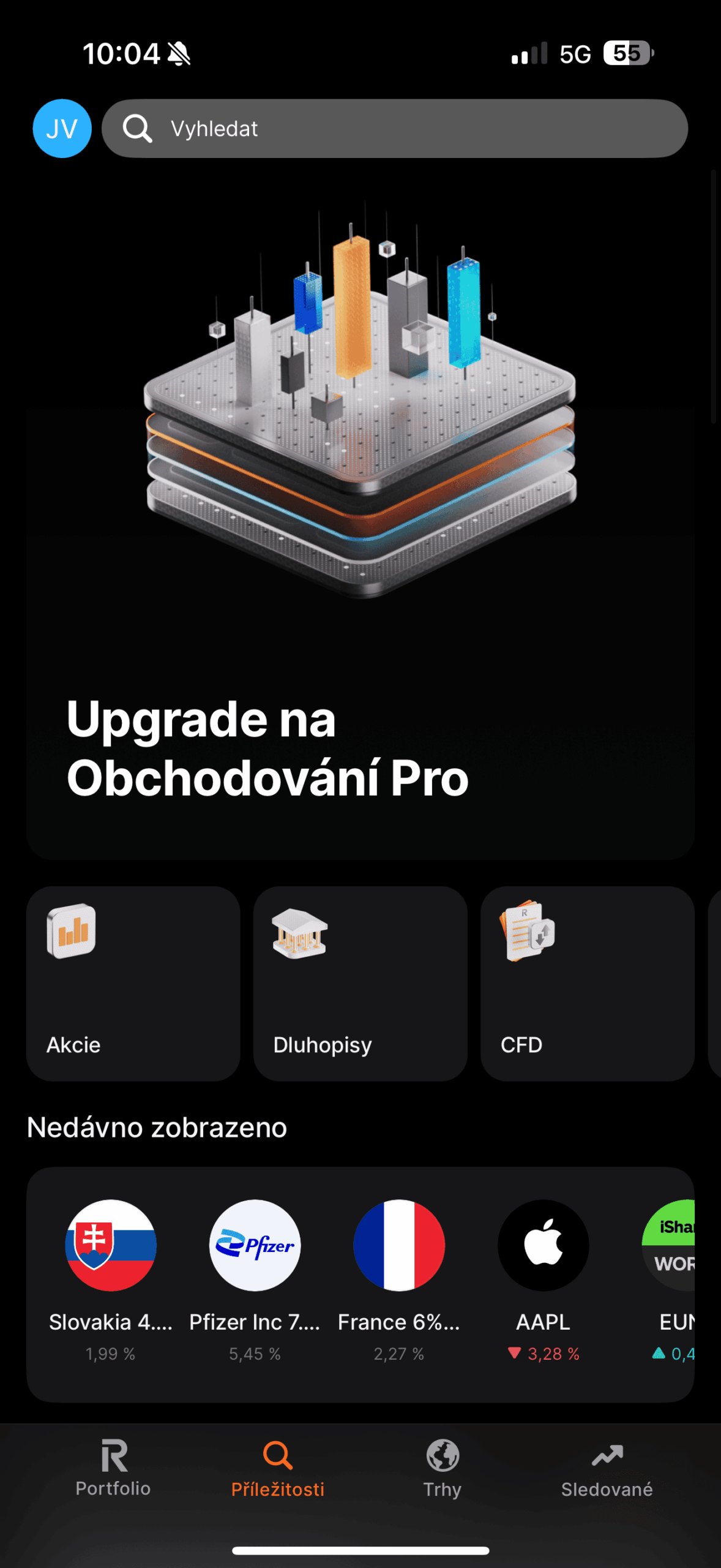 Jakmile máte vložené peníze, pustíte se do obchodování. Na výběr máte z akcií, klidně frakčních akcií (kde si koupíte jen část akcie), vybírat také můžete z řad ETF, CFD nebo dluhopisů a to dokonce i těch státních. Právě nabídka státních dluhopisů není úplně obvyklá.