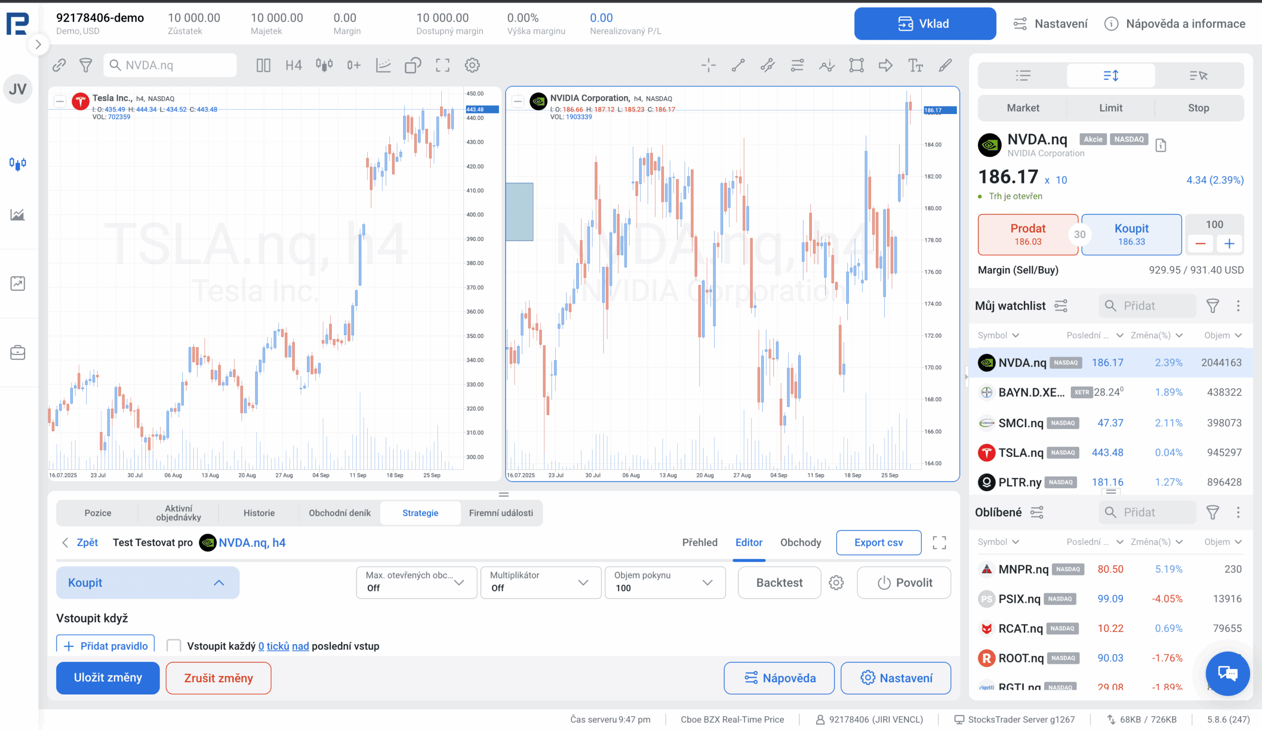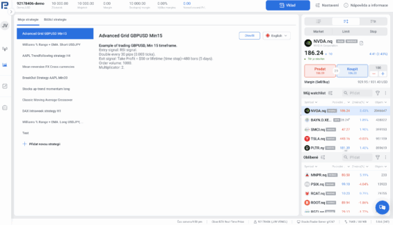 V levém sloupci také přibyla možnost vytvoření vlastní automatizované strategie, to určitě ocení pokročilí obchodníci.