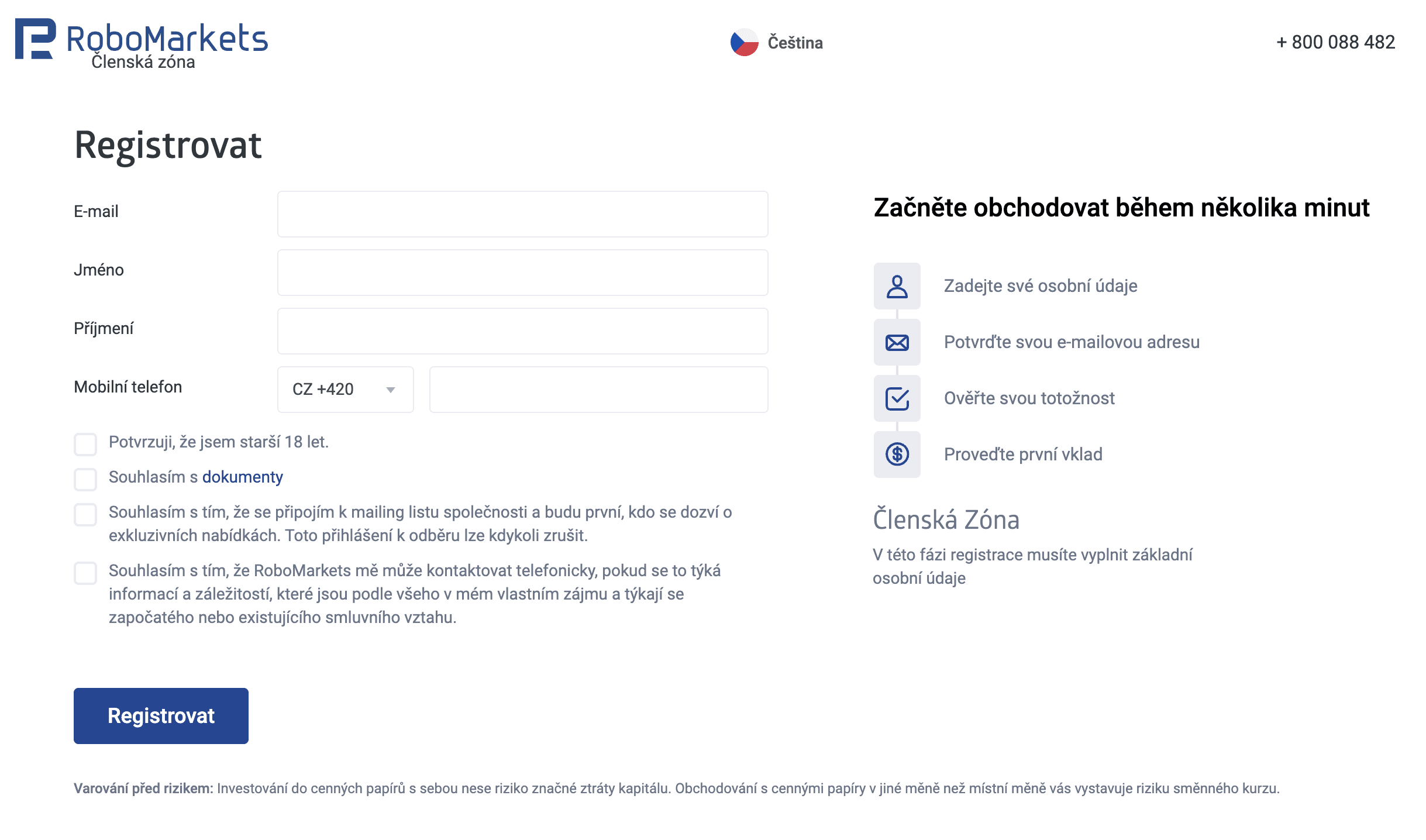 RoboMarkets podporuje české investory nabídkou zákaznické podpory v českém jazyce a možností vést obchodní účet v korunách.