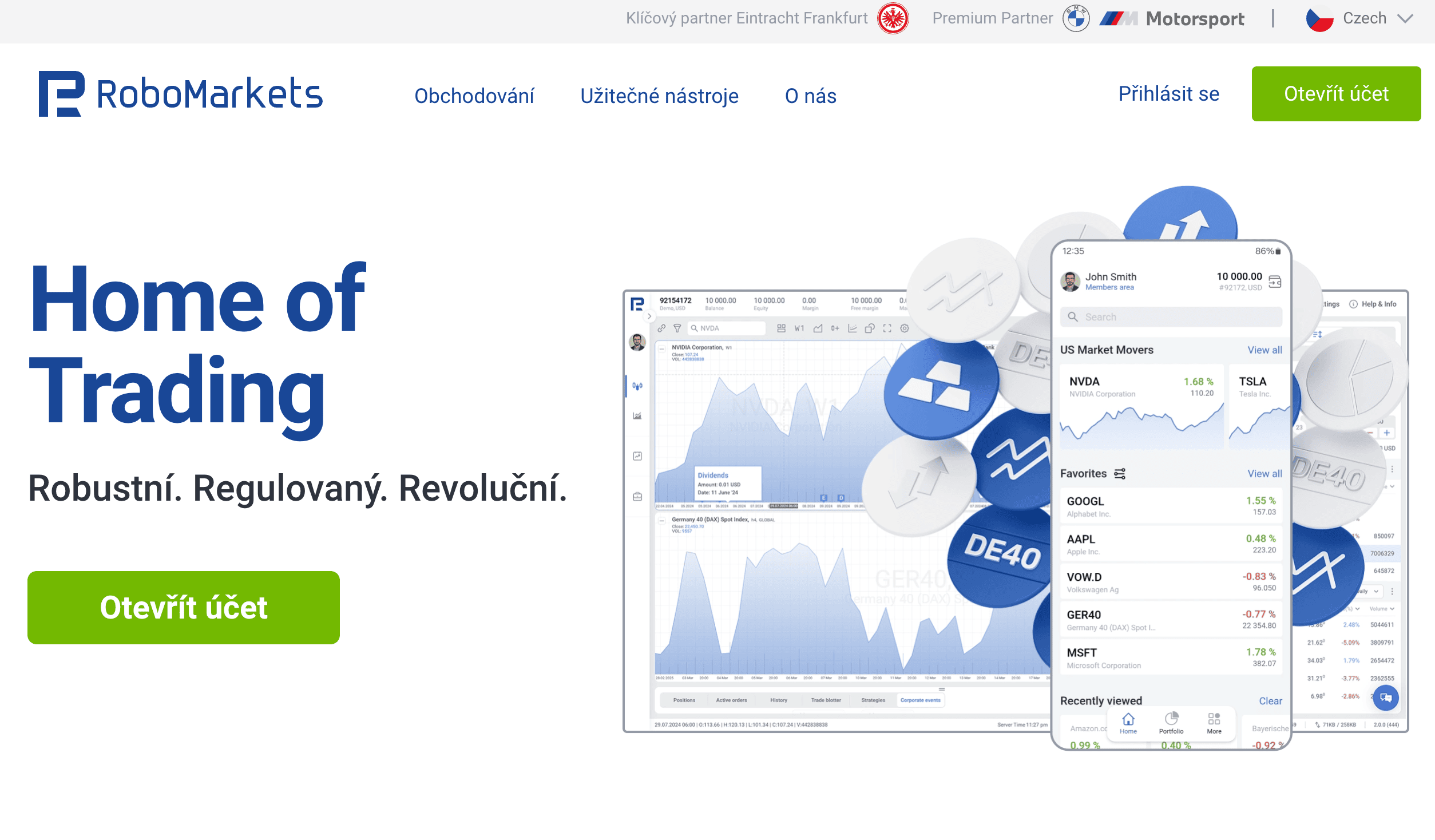 RoboMarkets je spolehlivý evropský broker s férovými podmínkami a širokou nabídkou akcií.  Nákup akcií bez poplatků, česká podpora, účet v Kč a přehledná mobilní aplikaci, to jsou hlavní benefity.