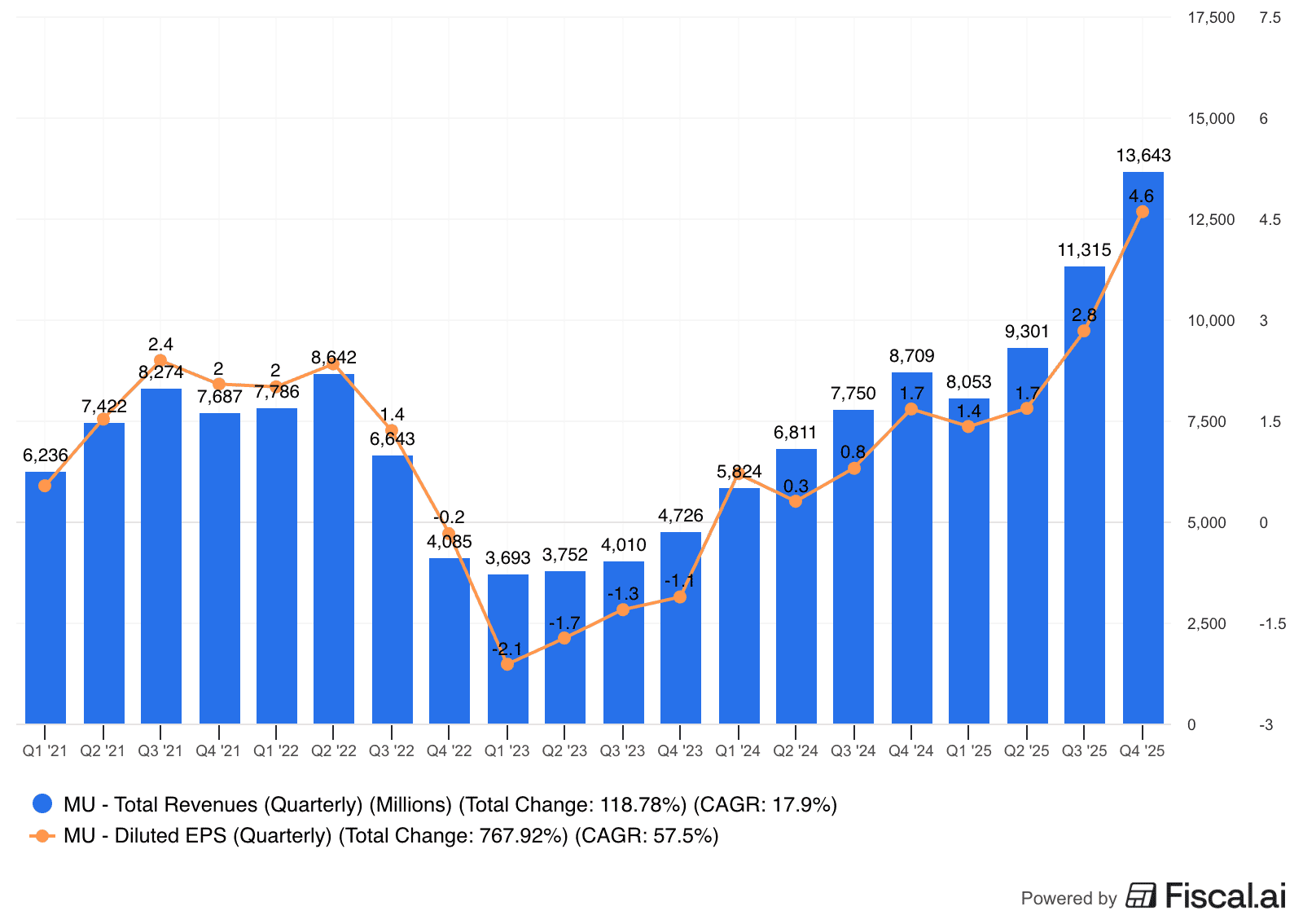 Celkové tržby Micronu dosáhly 13,64 miliardy dolarů, což představuje meziroční nárůst o 57 procent. Oproti stejnému období loňského roku se tak potvrdil prudký obrat v cyklu paměťového trhu.
