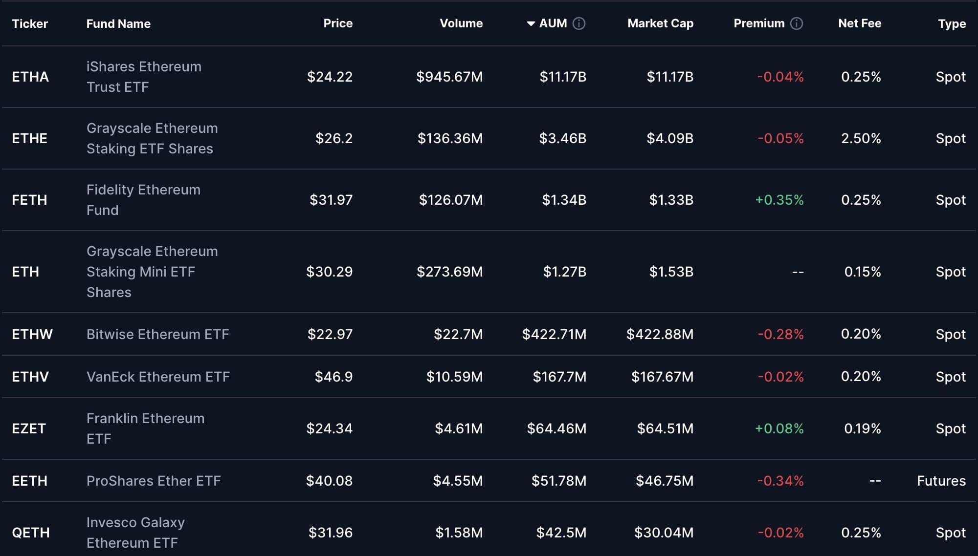 List spotových Ethereum ETF