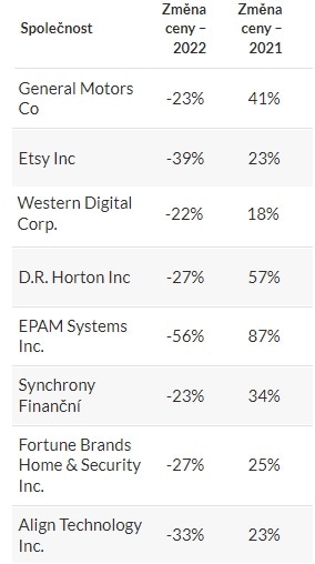 Porovnání výkonnosti jednotlivých akcií v letech 2021 – 2022